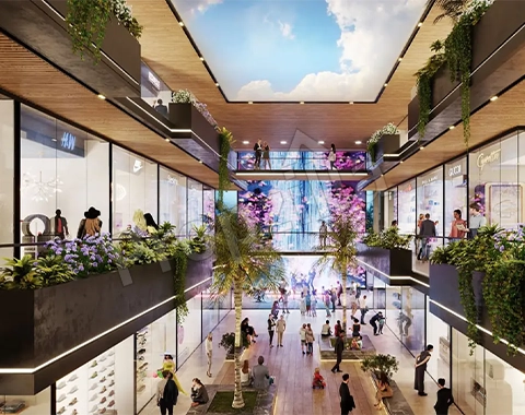 • High-Street Retail & F&B — Double-height shops, branded outlets, food courts, restaurants, and cafés for a vibrant shopping experience.
